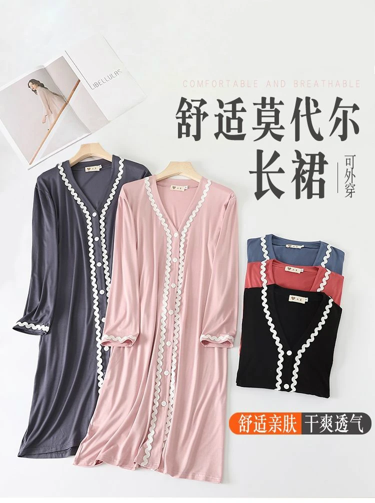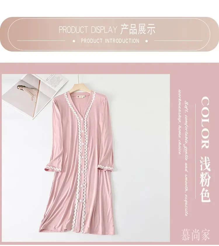 Maternity Dress Nightgown Modal Button Breastfeeding Pregnancy Dress Pajamas