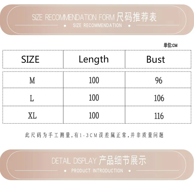 Because of the difference between the monitors and lights, the color maybe a little different from the real one. The size is measured by hand, there is 2-5CM error. Thank you for understanding.
